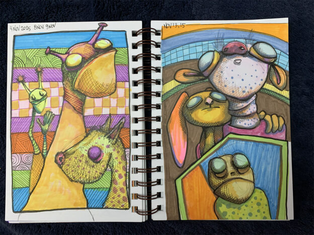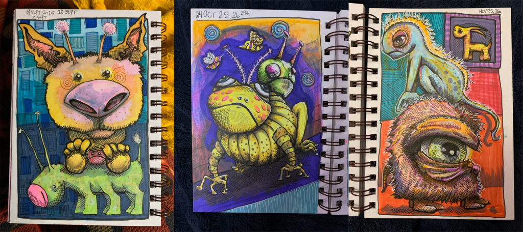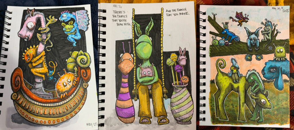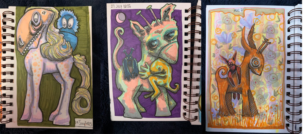 July 2025 sketchbook, www.theslumberingherd.com