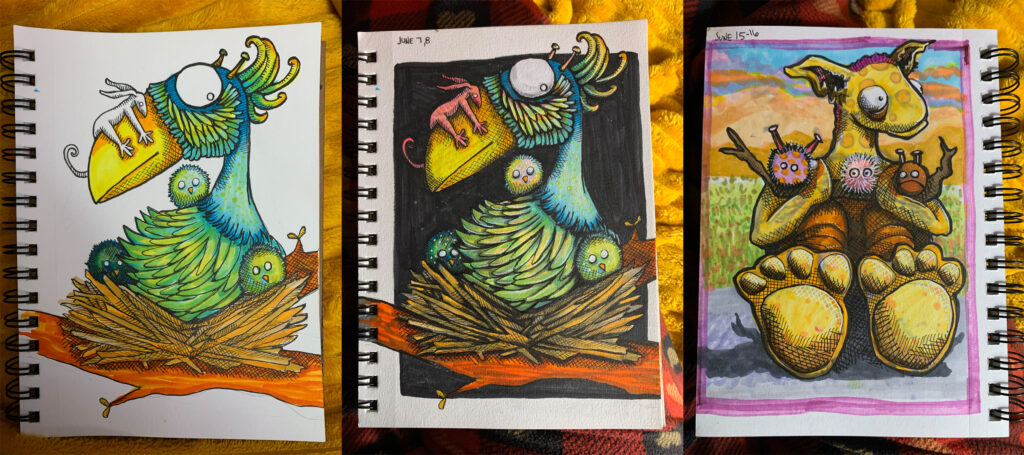 I’m not gonna lie. I came here looking for something and thought, why not post some of that sketchbook stuff? So here’s some sketchbook stuff. I included some in-progress shots to prove it’s not AI. Is that a thing I have to do now? :(